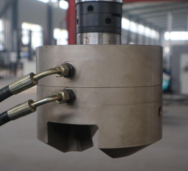 強迫液壓夾頭由夾頭和液壓驅(qū)動模塊組成。液壓夾頭的作用是夾持被測試件,由夾具體、夾緊活塞、鉗口和相關附件組成。夾緊油缸嵌入在夾具體中,采用雙向夾緊方式,不管試樣厚度變化,始終保證試樣同軸度。夾緊活塞與夾具體研配,配合間隙更小,使得夾具體使用壽命更長。